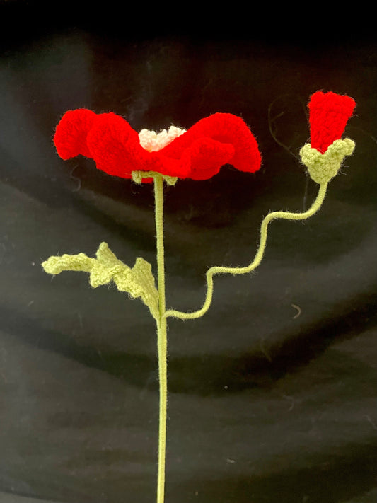 Handmade Crochet Long Stem Flower —— Poppy