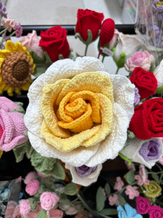 Handmade Crochet Rose - Yellow & White Bloom