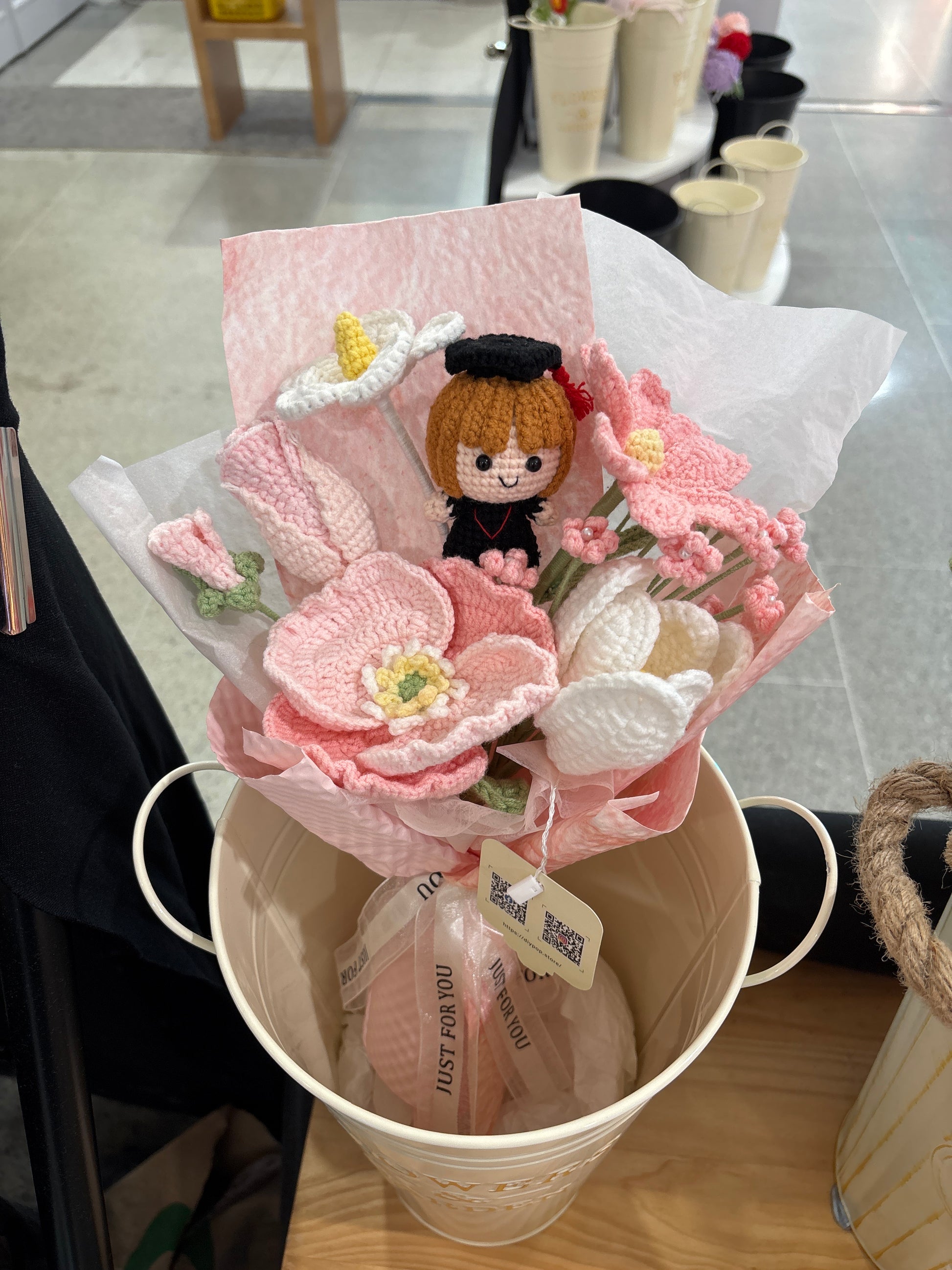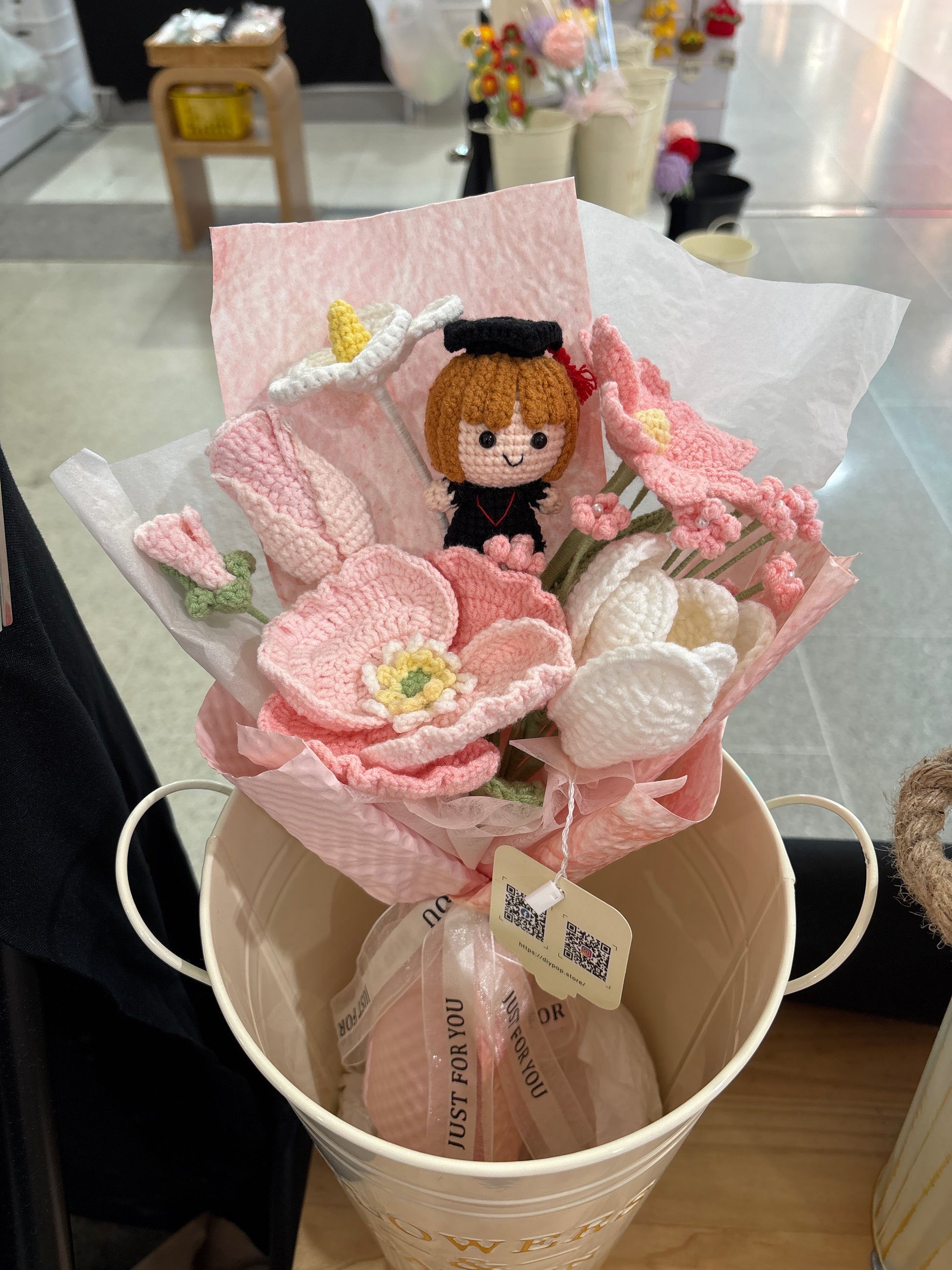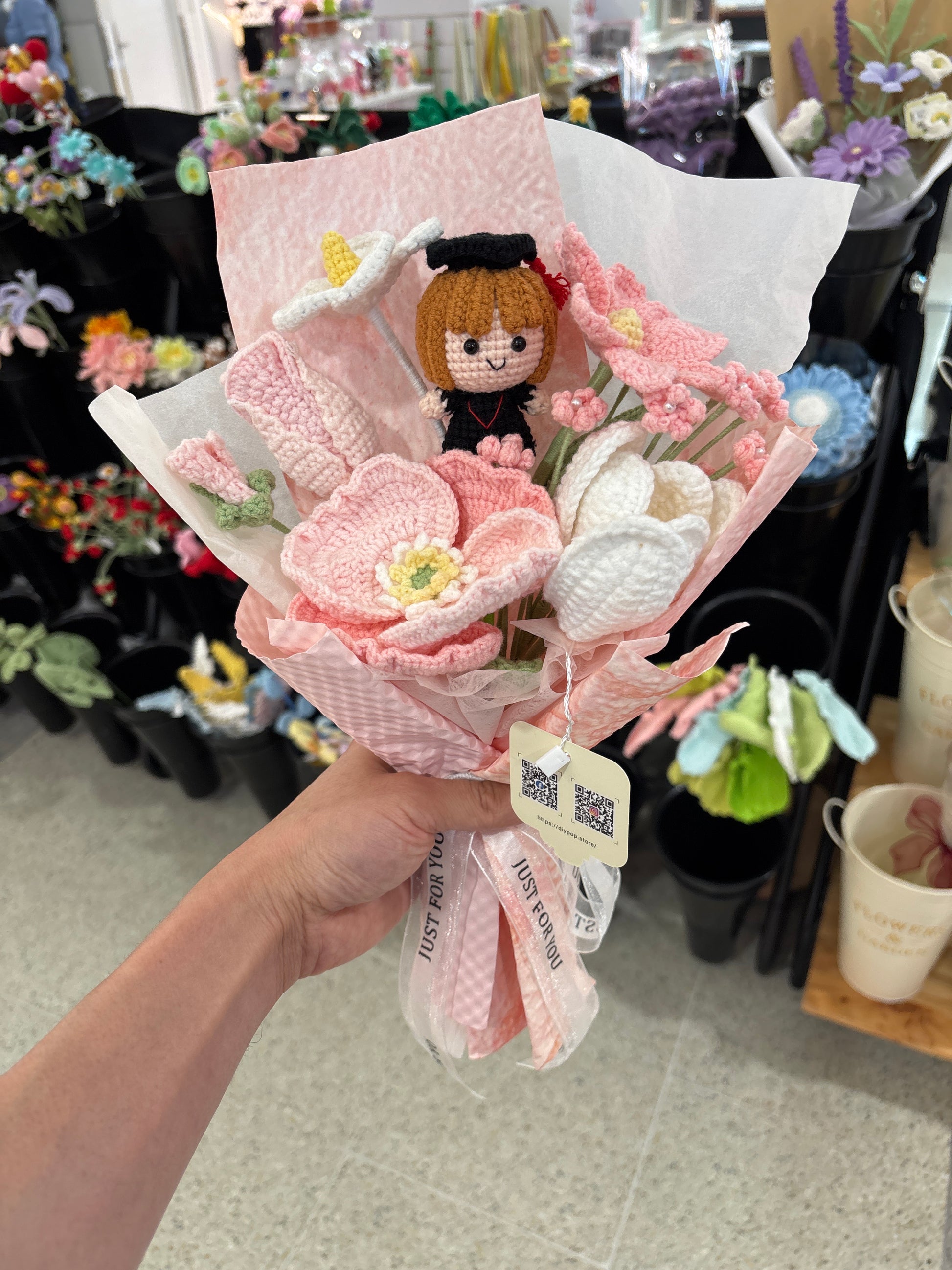 Celebrate a special graduate with our handmade crochet bouquet. Each bouquet is unique and expertly crafted, making it a perfect gift for the graduation season. Brighten up their special day with this one-of-a-kind creation that shows your appreciation and congratulations.