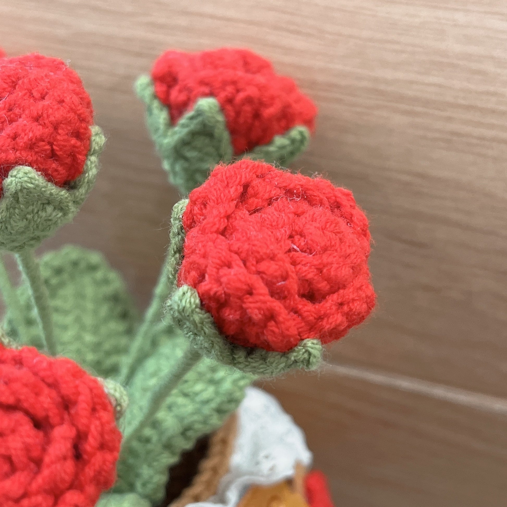 Crafted by hand, this crochet rose bouquet is the perfect gift or decoration. Each delicate flower is flawlessly designed and arranged in a decorative pot for a touch of cuteness. Brighten up any space with this unique and charming addition.